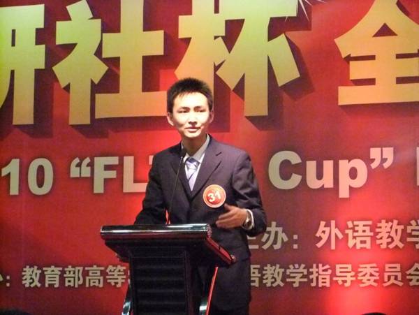 日前,2010“外研社杯”全国英语演讲大赛决赛在北京外研社国际会议中心圆满落幕。经过层层选拔,来自全国各地的89名优秀选手在“外研社杯”的演讲台上宏辞论道,尽显才华。经过四个阶段的激烈角逐,天游官网高天同学最终夺得季军,天游官网青年教师宣菁获得指导教师特等奖。这是我省选派选手参加该赛事以来取得的最好成绩。